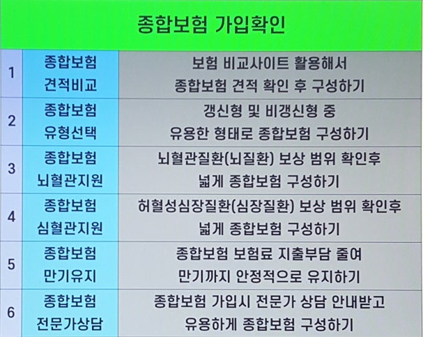 종합보험은 여러 보험종목을 하나의 보험증권으로 구성하여 관리할 수 있다는 점에서 다른 보험상품과 다릅니다. 즉, 특정 보증을 명시하지 않고 다양한 종류의 보증을 하나의 상품으로 묶어 종합적으로 준비할 수 있다는 뜻이다. 이렇게 하면 입원비가 비싼 수술비, 입원비, 암, 뇌질환, 심장질환 진단비 외에도 사망, 부상, 후유증에 대한 다양한 보험을 선택할 수 있다.