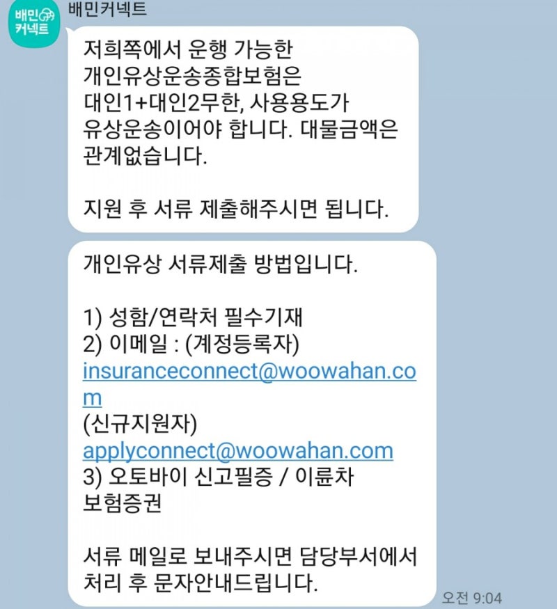 – 배민커넥트오토바이 저렴한 유료교통보험 후기