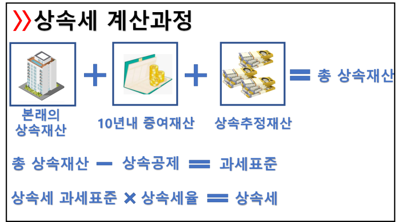 상속세는 과세표준에 세율을 곱하여 계산합니다. 세율은 최저 10%에서 최고 50%까지 5단계 누진세율 구조를 가지고 있습니다.