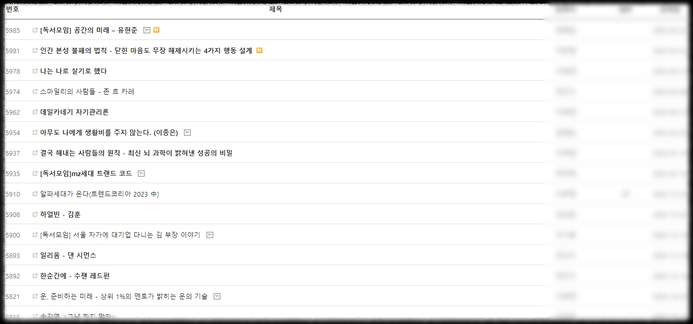 현재까지 약 1,400권의 책을 읽었으며 책을 활발하게 공유하고 있습니다.