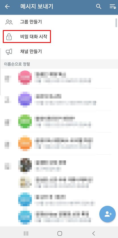 아래는 텔레그램의 고유 기능 ‘시크릿 채팅‘.