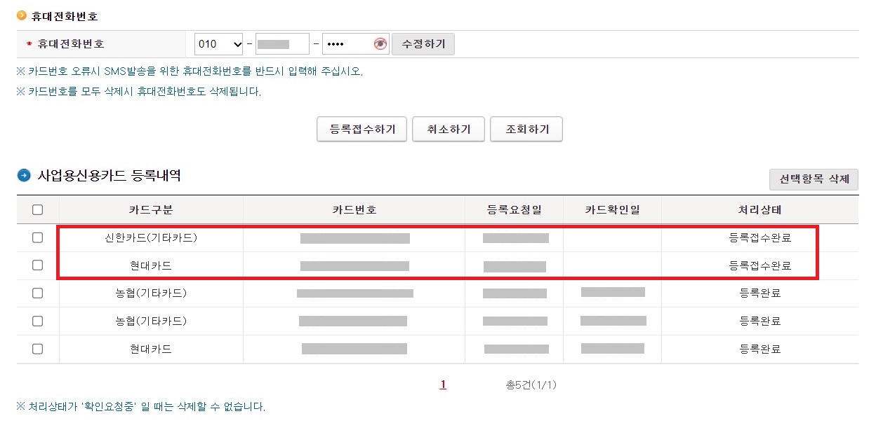 3 등록 후 일주일에서 최대 한 달이 소요될 수 있습니다. (등록 다음달 15일부터 법인카드 조회 가능)