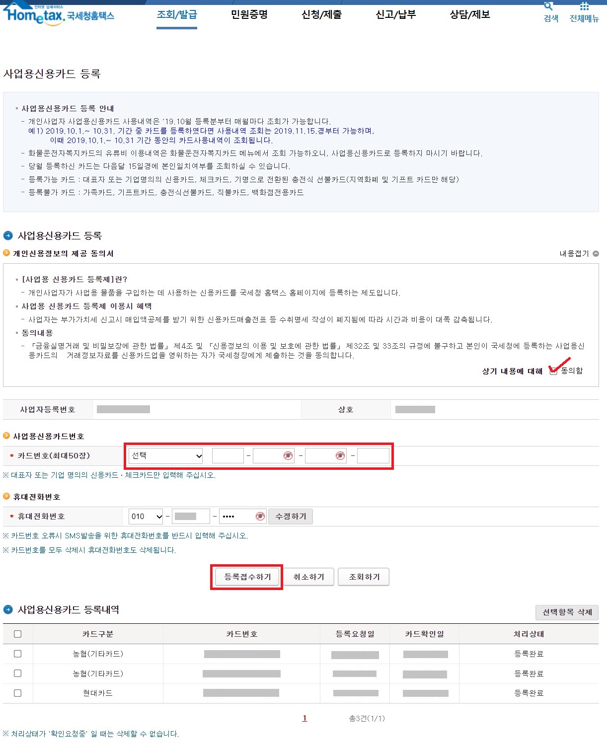 신규 사업자이거나 기존 자영업자라면 홈택스에 명함을 등록해야 합니다.