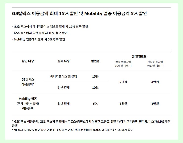 에너지플러스 에디션2의 경우 에너지플러스 앱을 설치하고 GS칼텍스에서 휘발유 할인을 받을 수 있는 카드를 이용해 결제하면 15% 할인, 정기결제만 하면 10%를 받을 수 있다. 의 할인. 추가 앱에 문제가 있지만 15%니까 커버할게요.